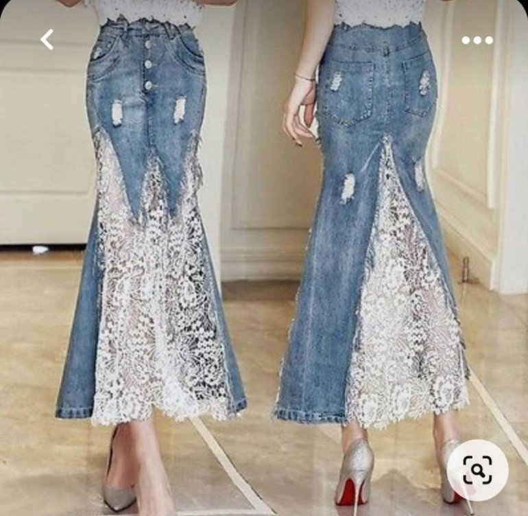 Джинсовая юбка с кружевом.