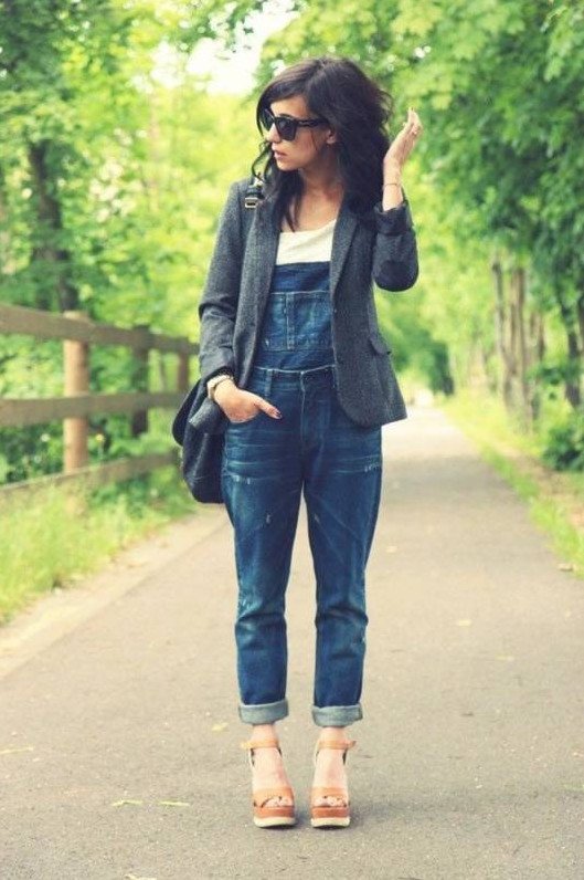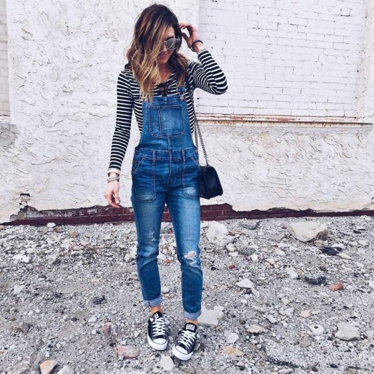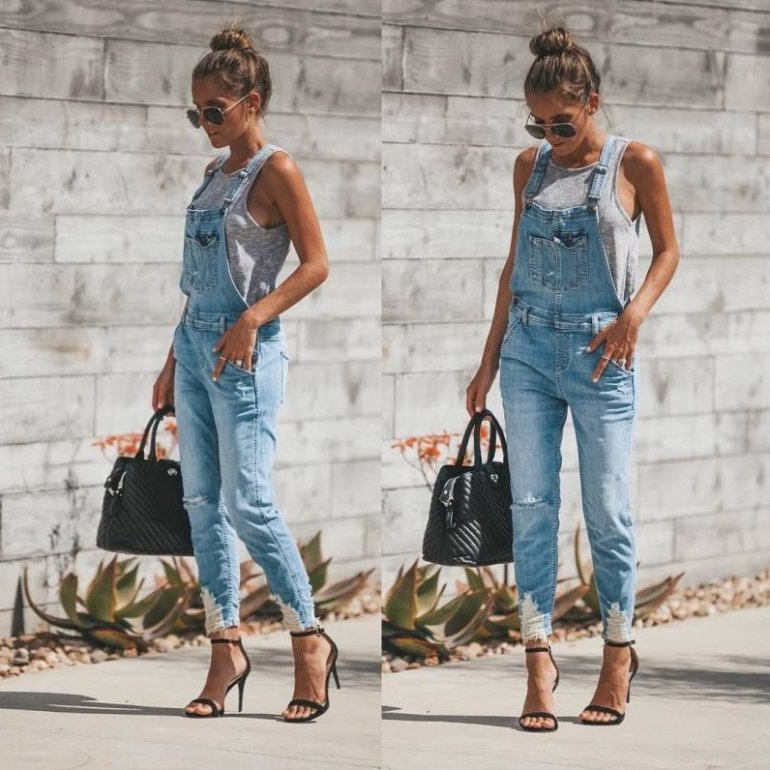 Образы с джинсовым комбинезоном.
