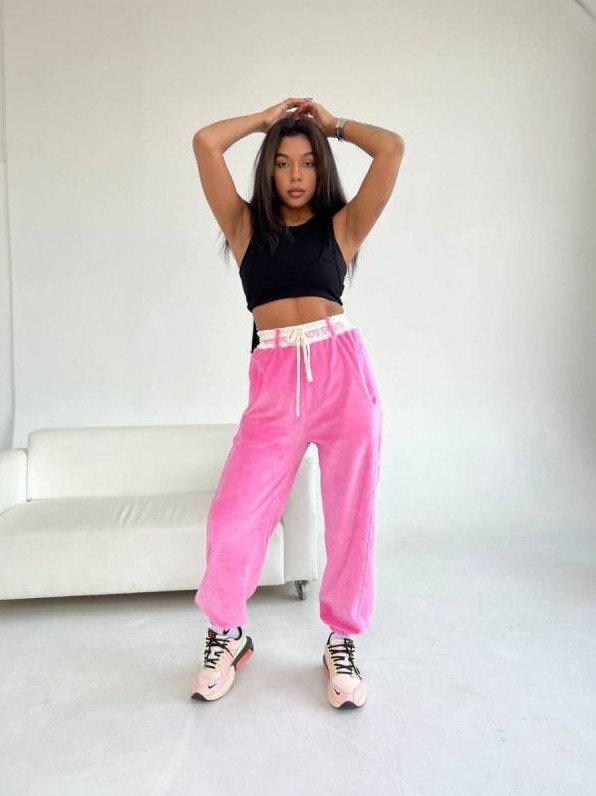 Розовые спортивные штаны.