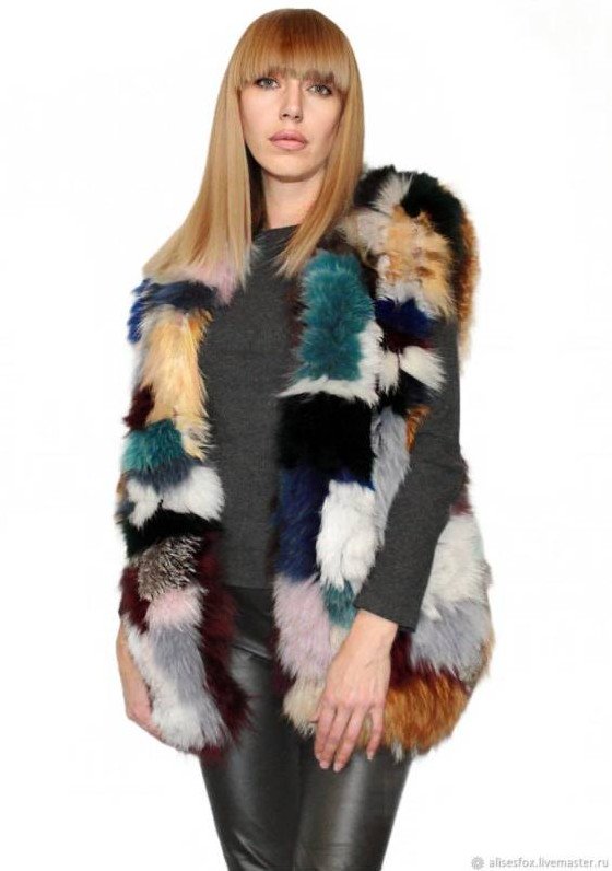Современные жилетки из кусков меха норки.