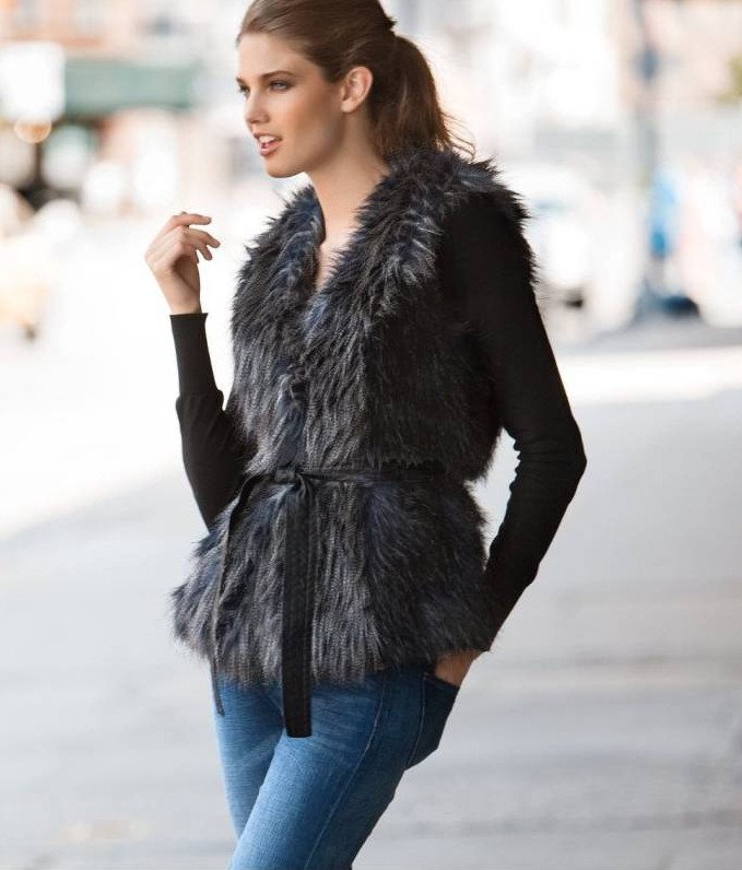 Темная жилетка из искусственного меха.