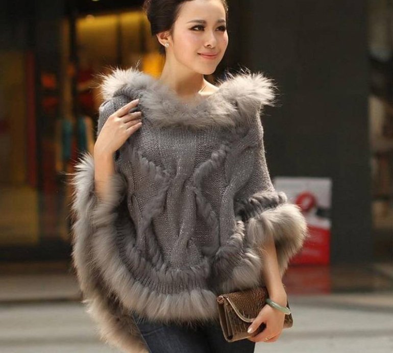 Накидка вязаная из меха.
