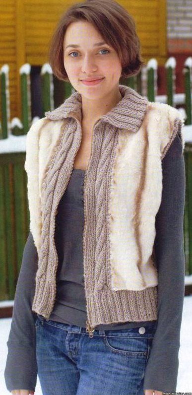 Вязаный жилет с мехом.