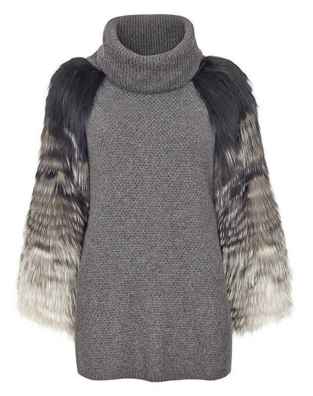 Свитер с меховыми рукавами.