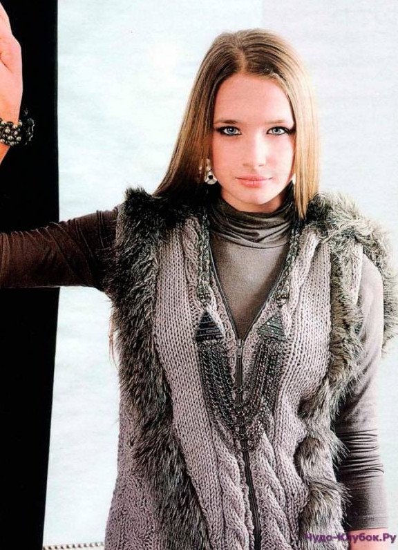 Вязаная кофта под меховую жилетку.