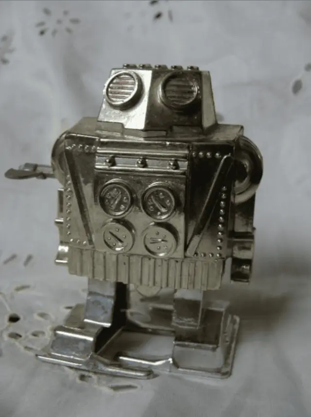 Шагающий робот. Между иным, часовой механизм. Чтобы заставить его бегать, необходимо было держать его за ноги, по другому он повсевременно прогуливался бы с ними в воздухе.