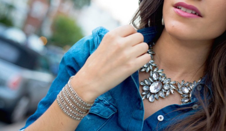 Ювелирные декорации на девушке.