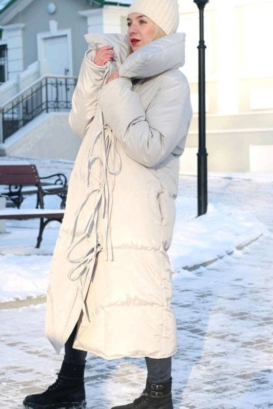 Бежевая куртка женская зимняя длинноватая.