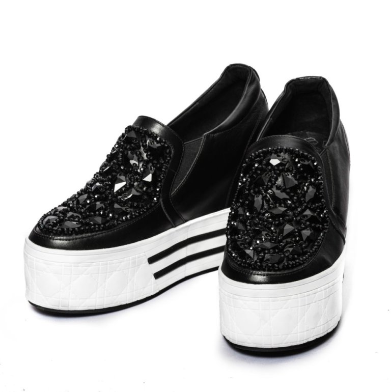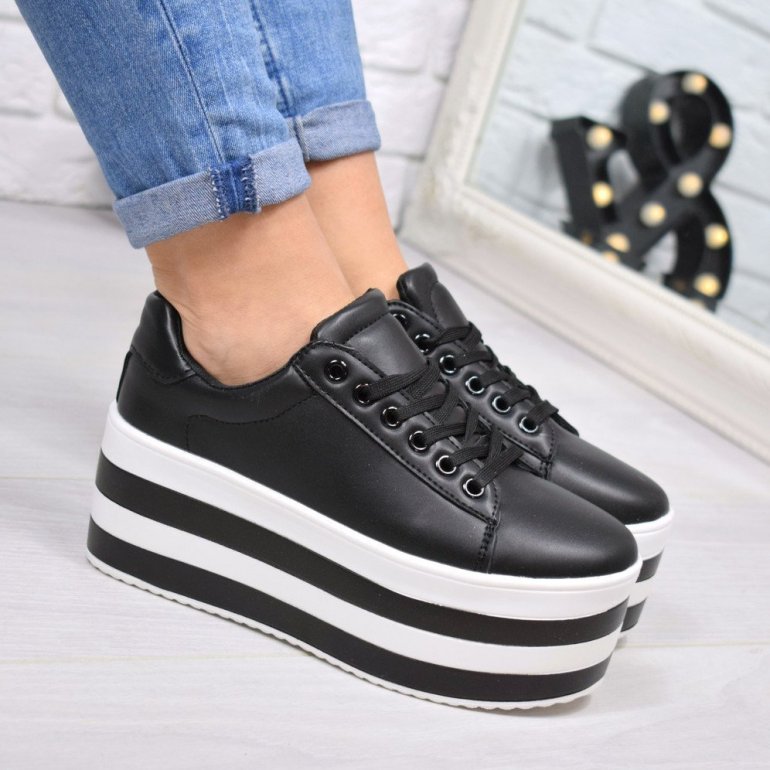 Чёрные кеды на высочайшей подошве.