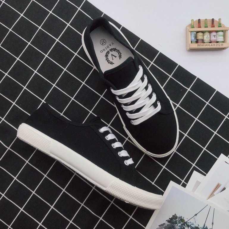 Вансы с темной подошвой.