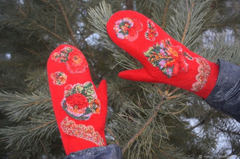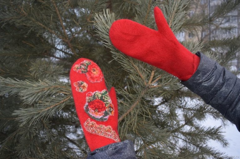 Валяные варежки очень красные.