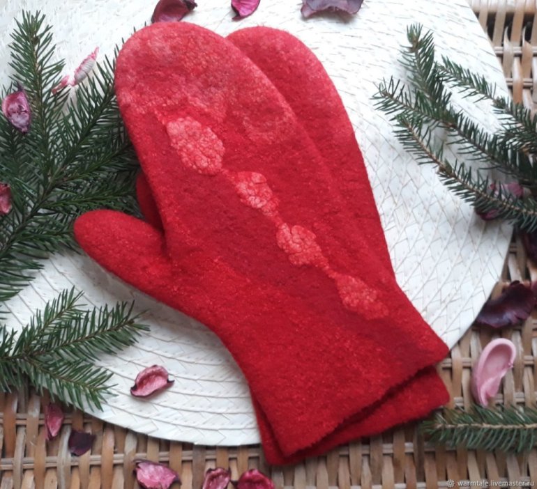 Очень красные валяные рукавицы.