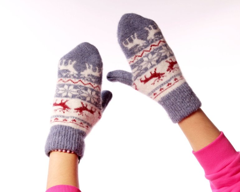 Очень красные варежки.