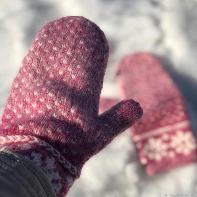 Вязаные варежки.