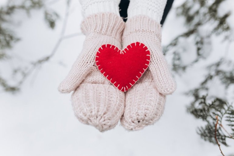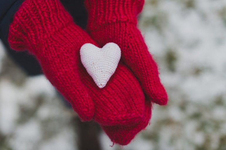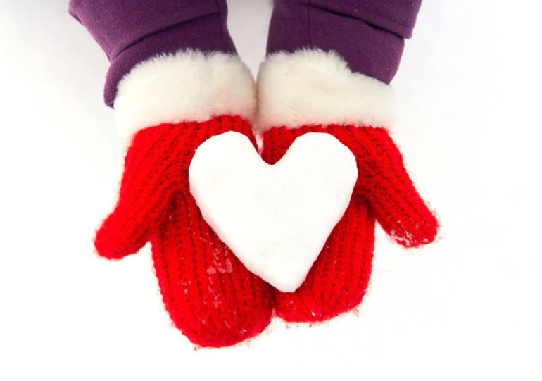 Сердечко в белых рукавицах.