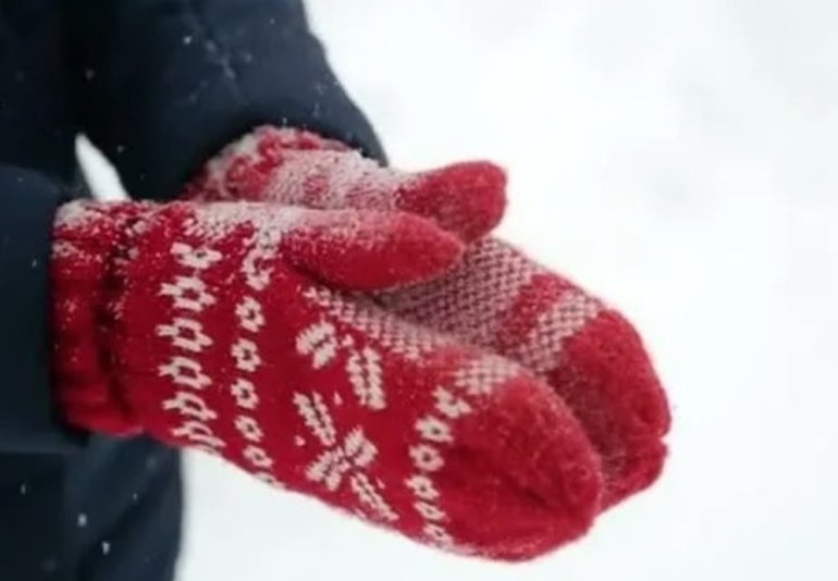 Варежки на руках.