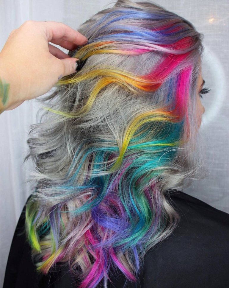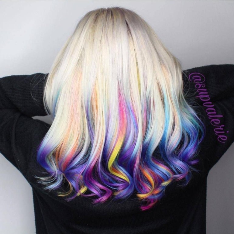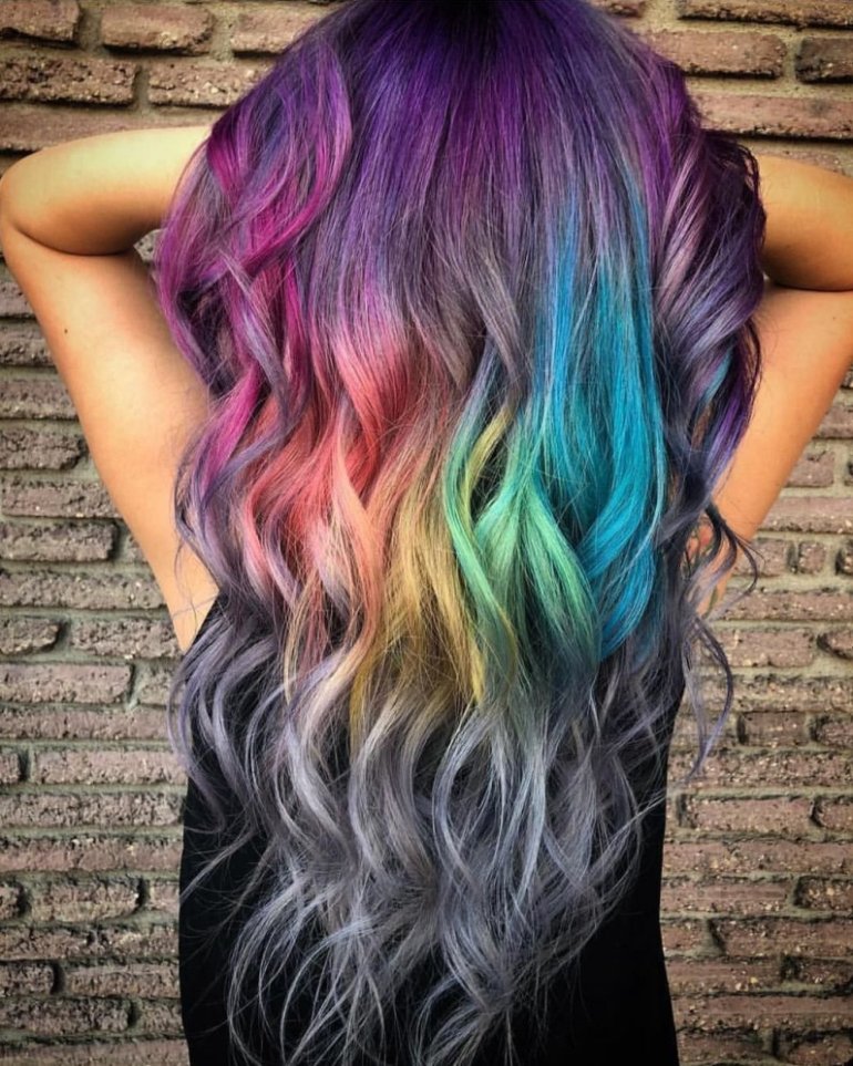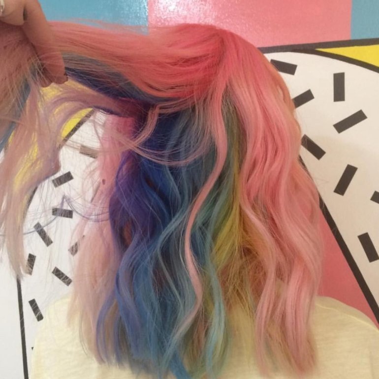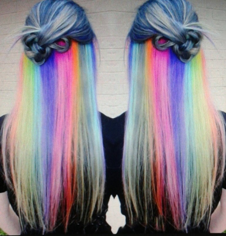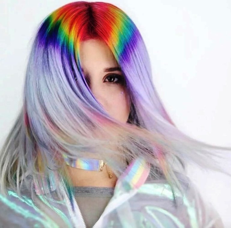Радужные волосы.