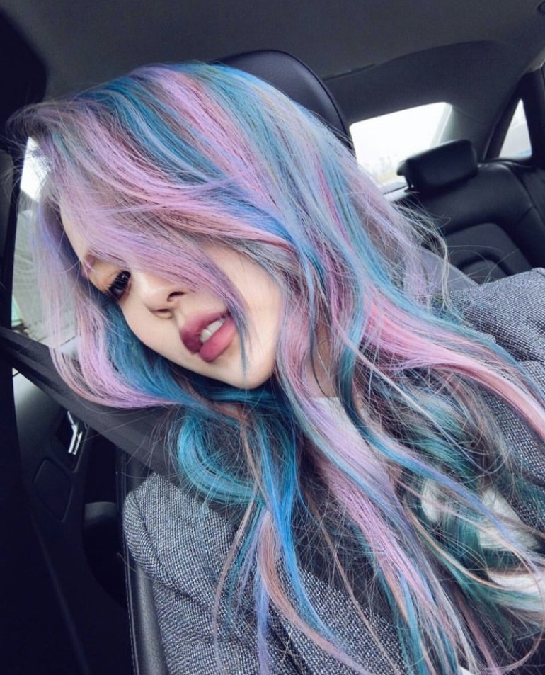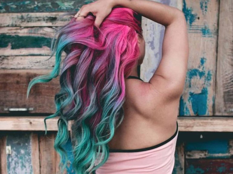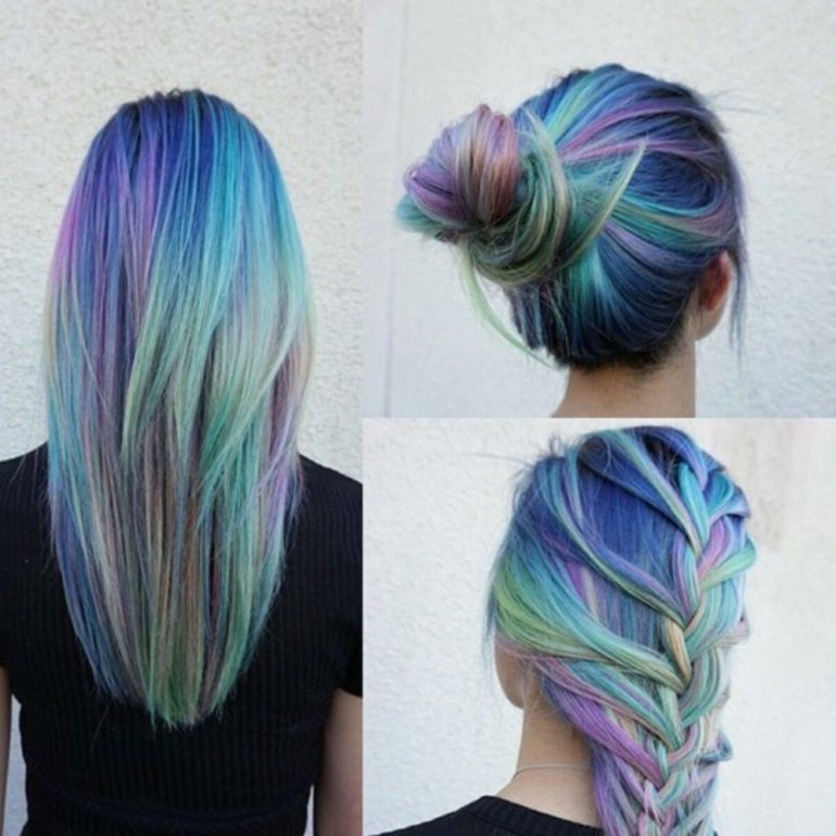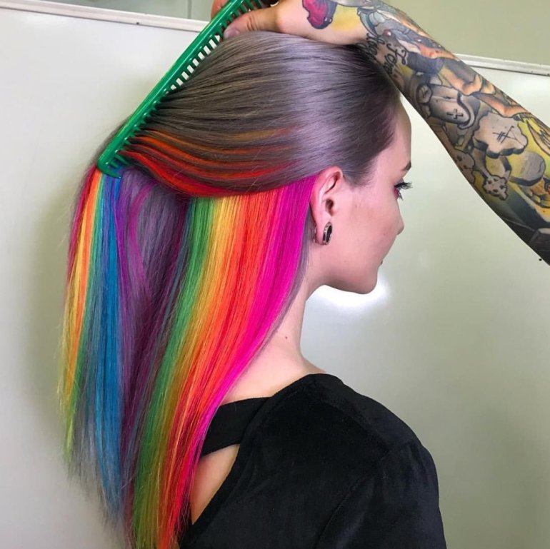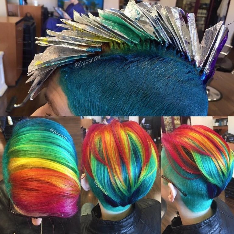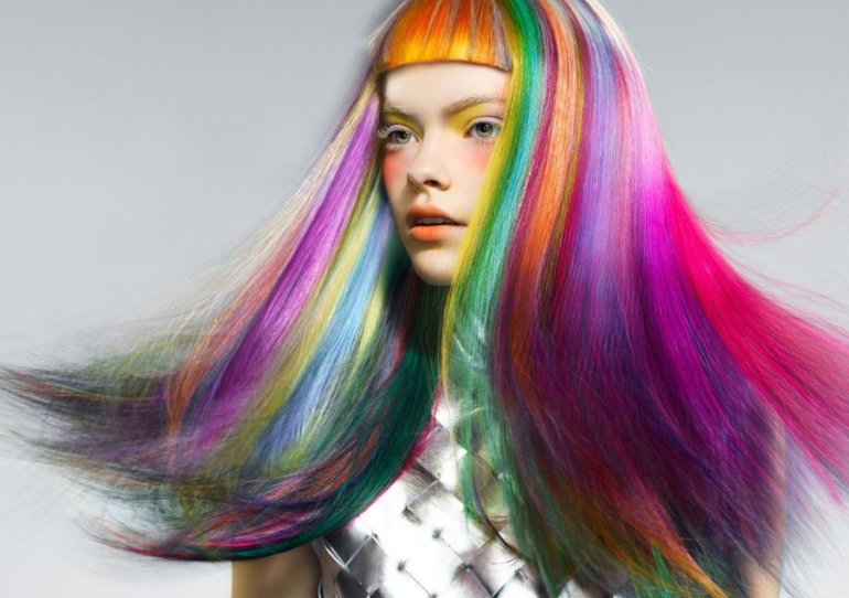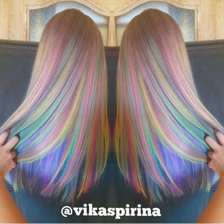 Радужные волосы.