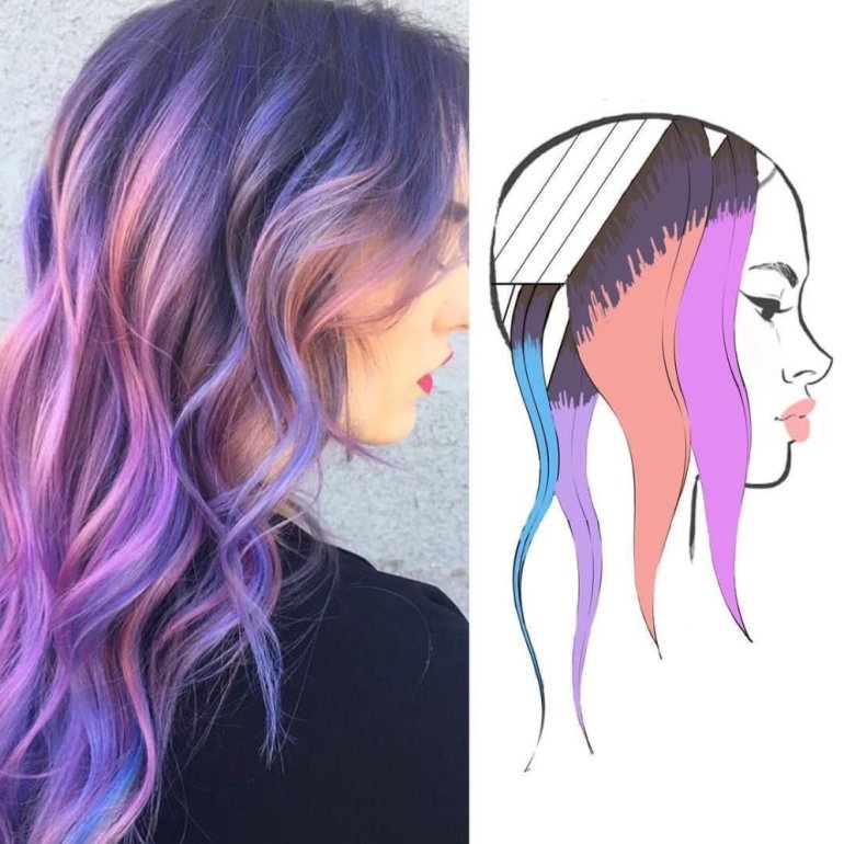 Схемы окрашивания волос в очень яркие цвета.