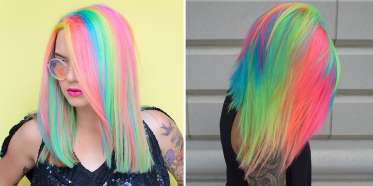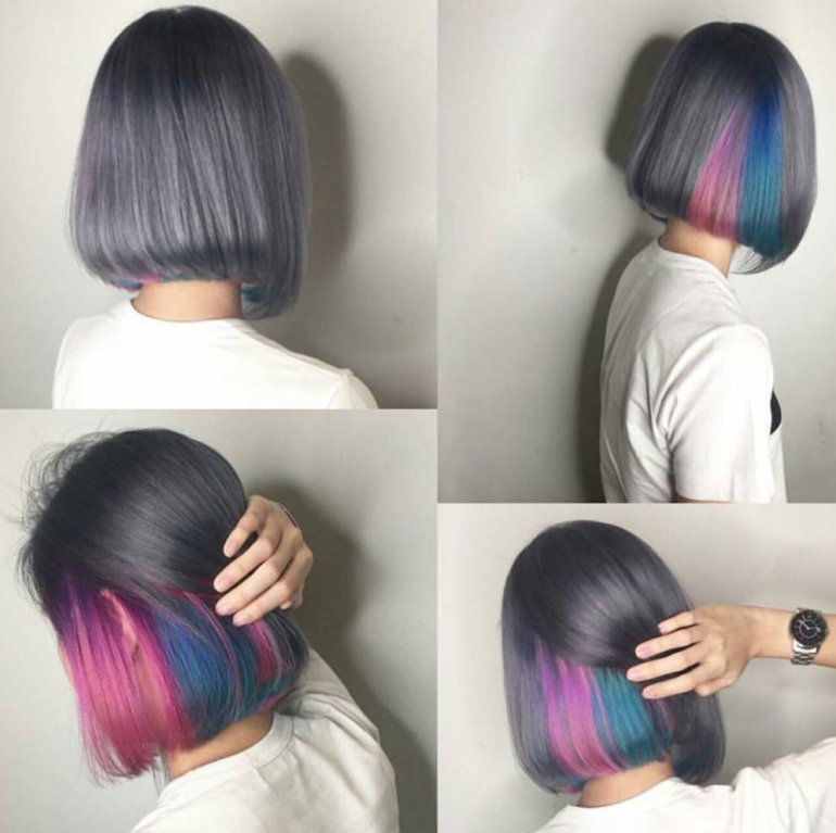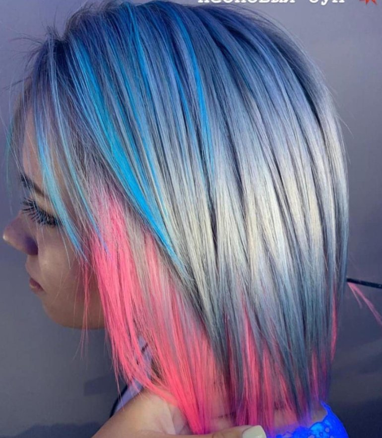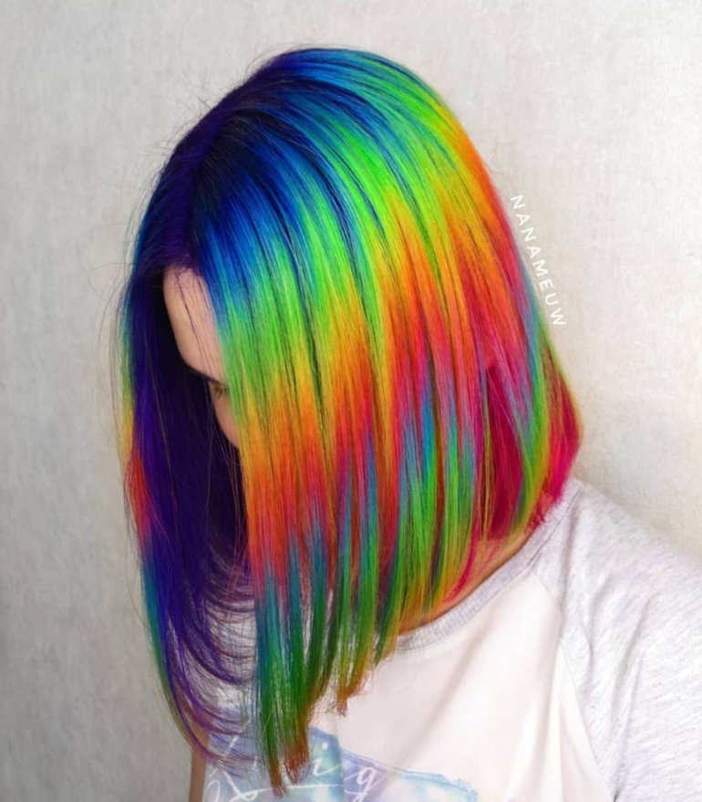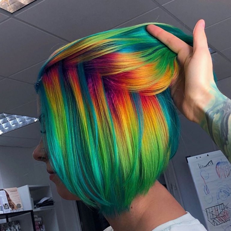 Радужные волосы каре.
