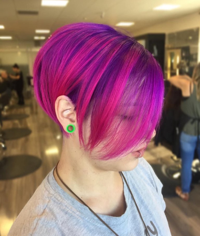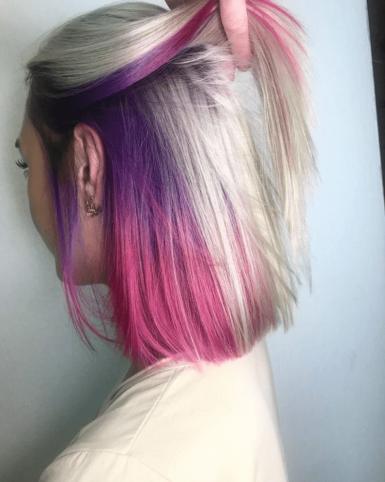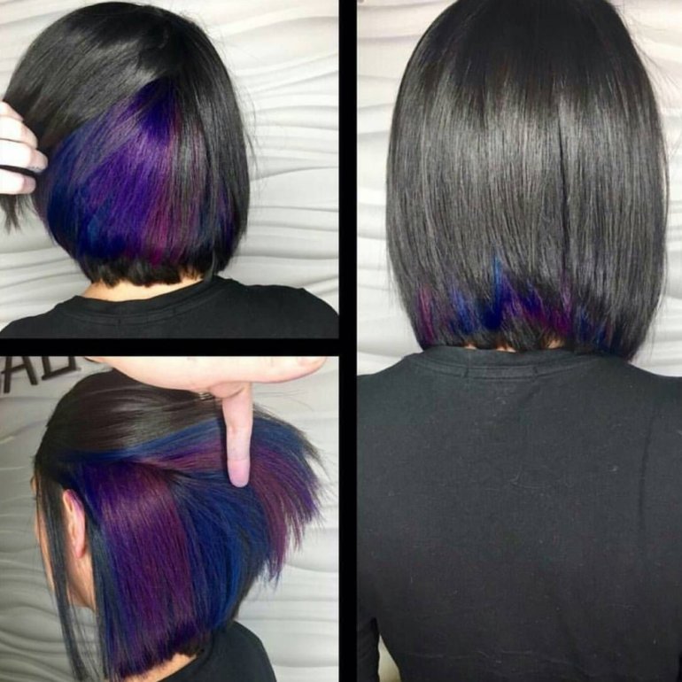 Фиолетовые пряди под волосами.