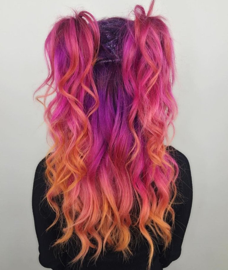 Цветной градиент на волосах.