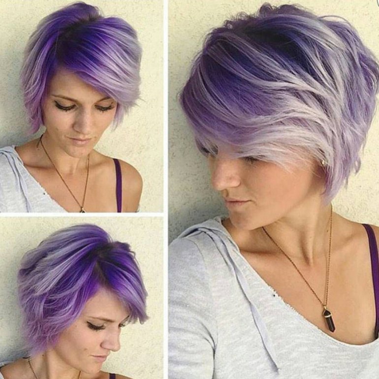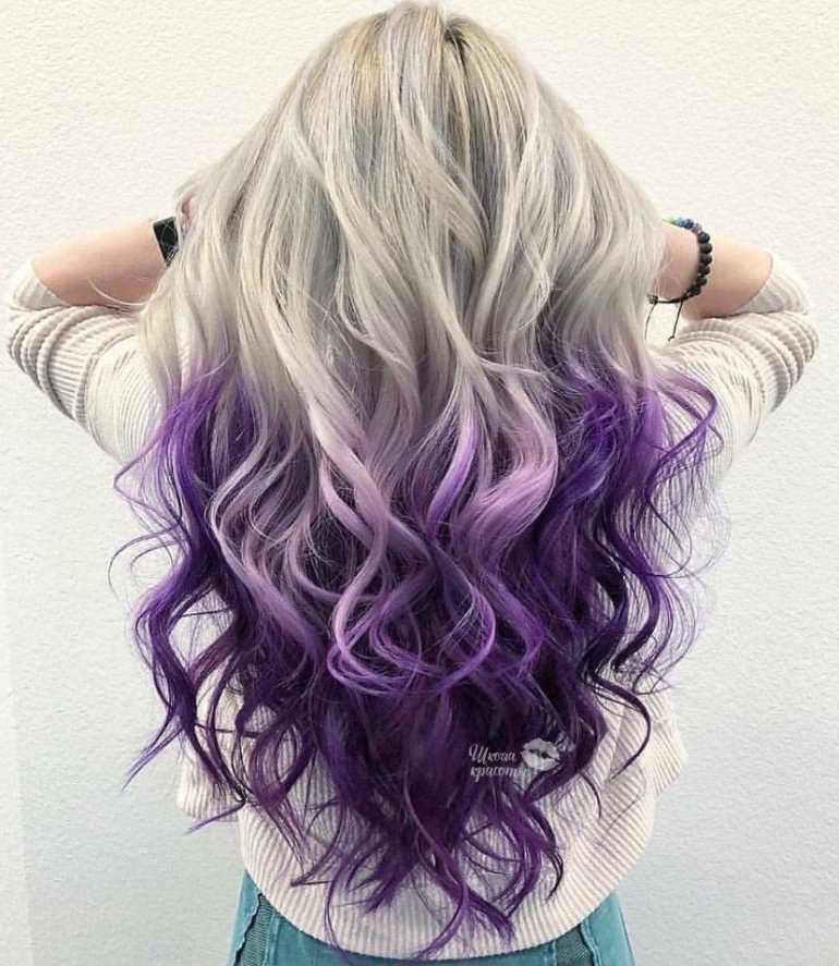 Фиолетовые кончики волос.