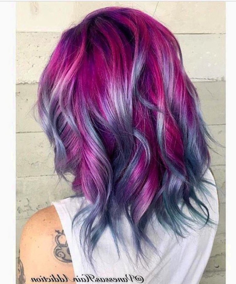 Окрашивание волос в голубий и фуксия.