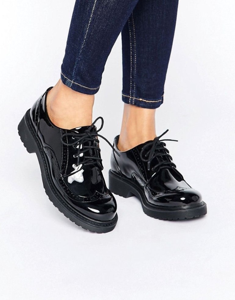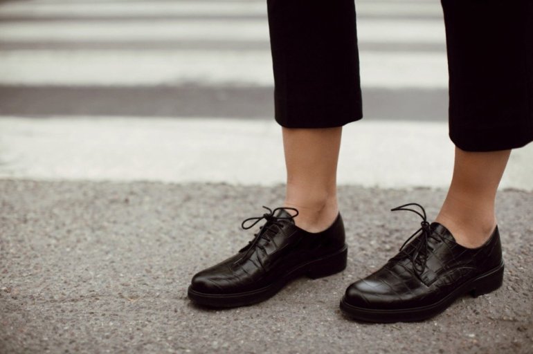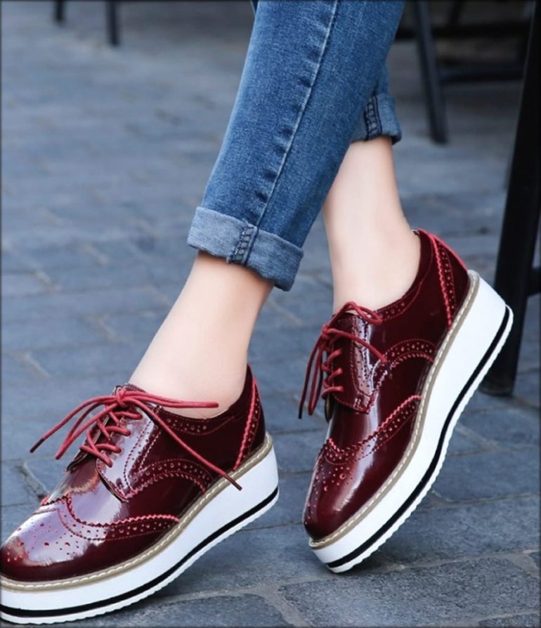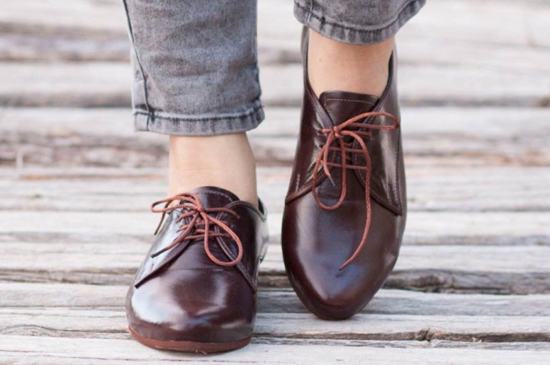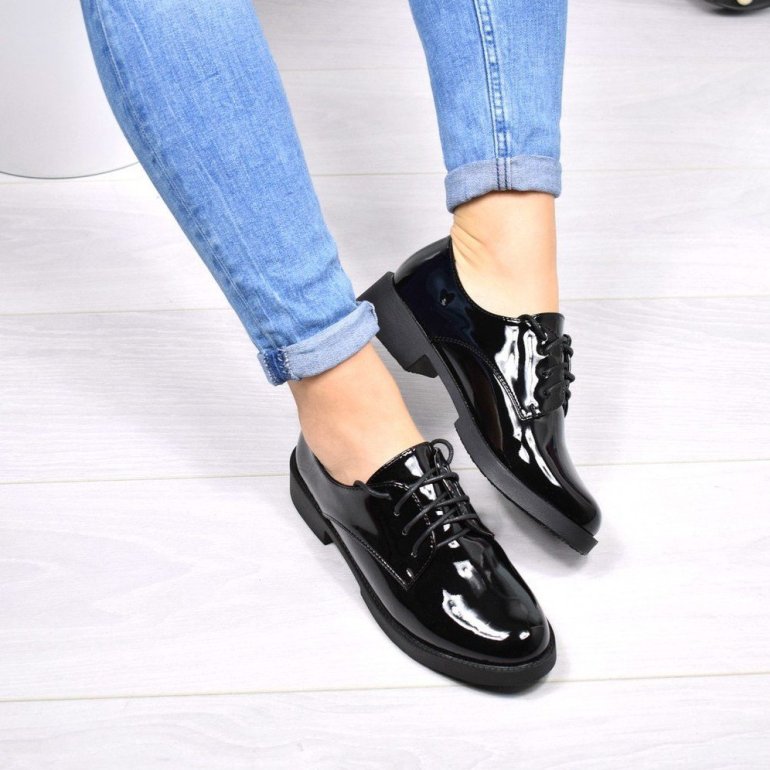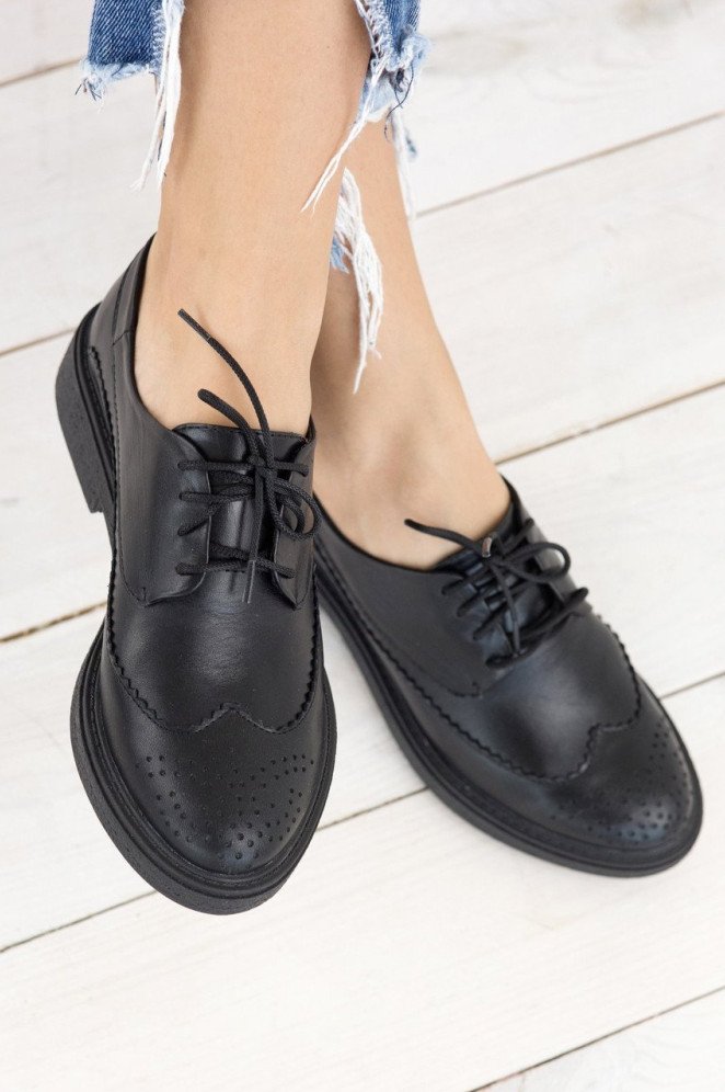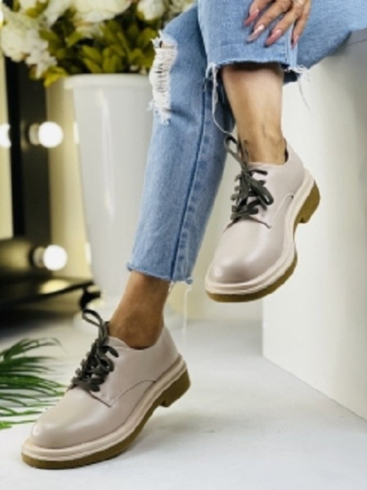 Ботинки кожаные Оксфорд дамские на шнурках на платформе.