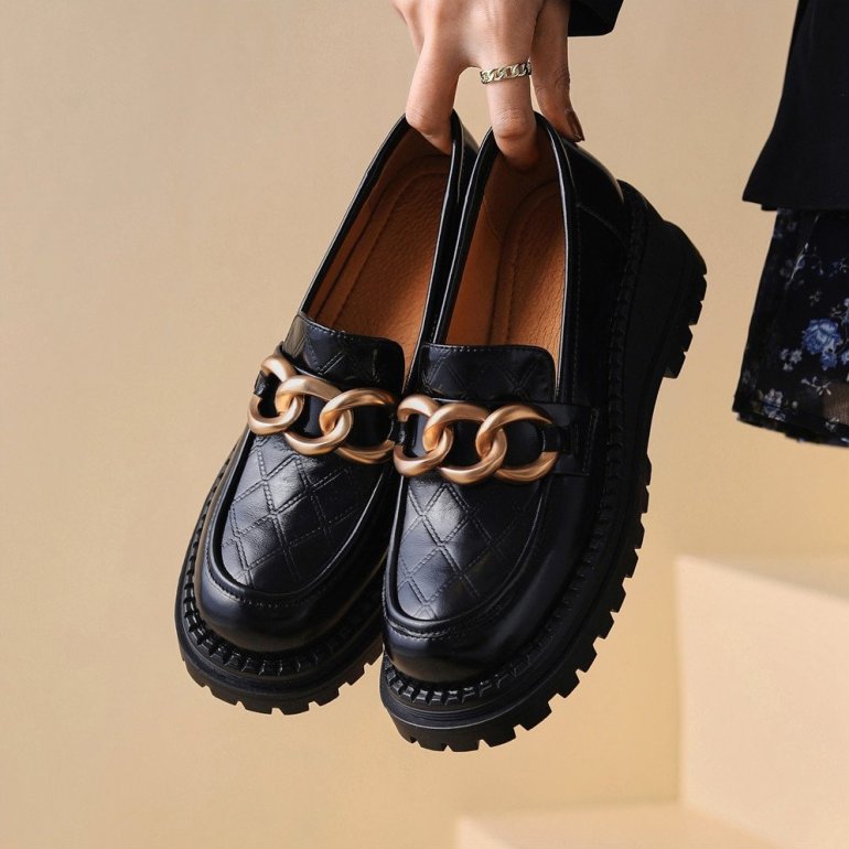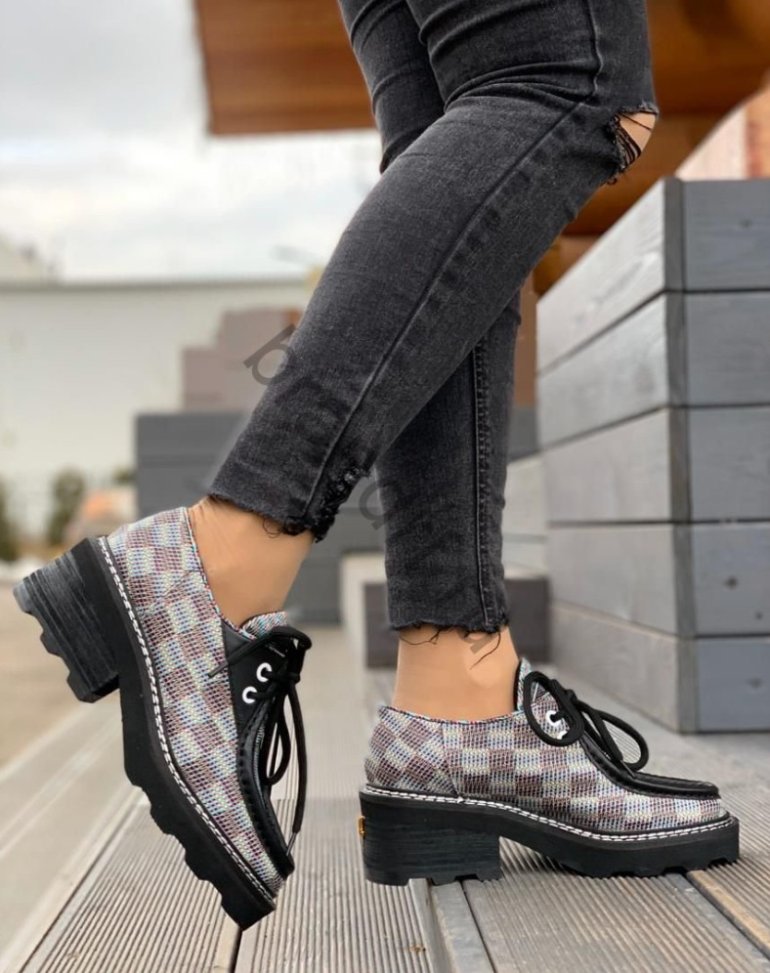 Полуботинки Тенденс дамские кожаные темные на платформе 2022.