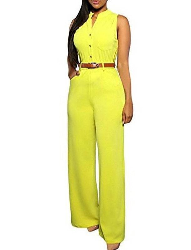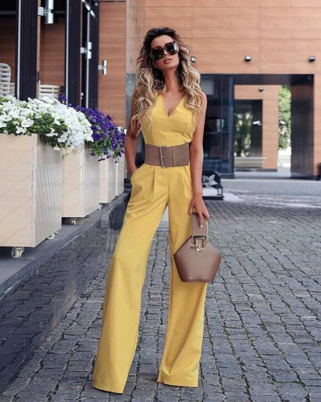 Желтоватый комбинезон дамский летний.