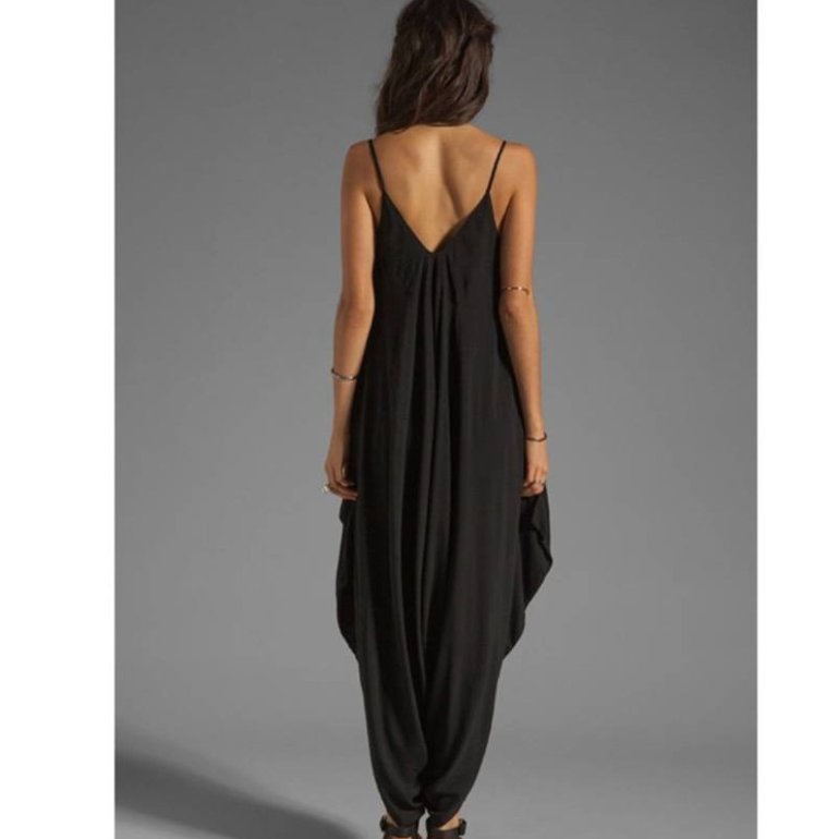 Темный комбинезон дамский с открытой спинкой.