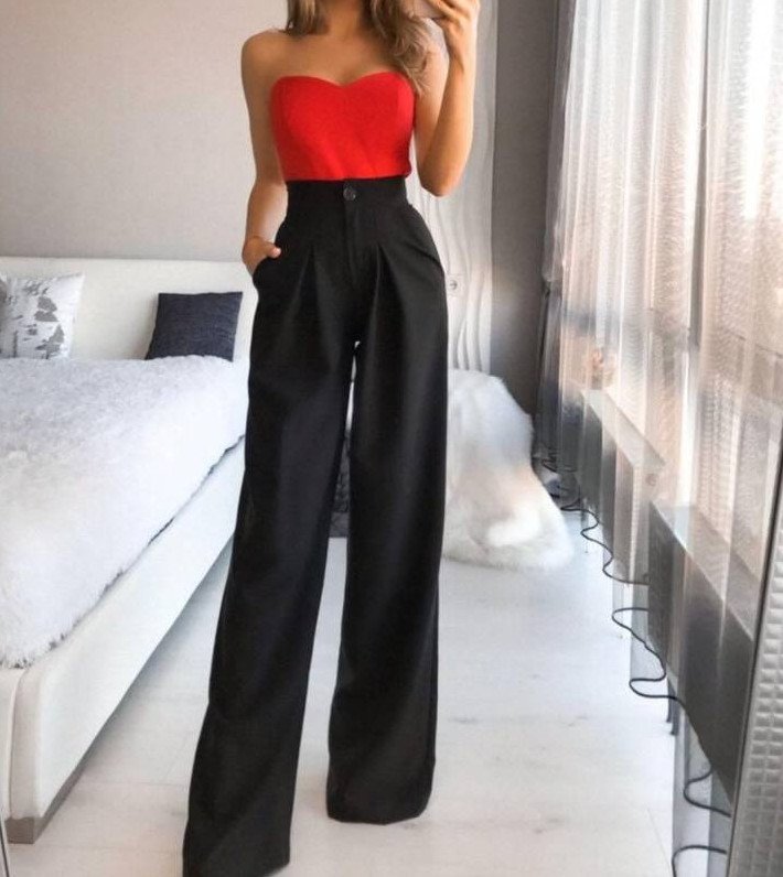 Вечерний образ с брюками палаццо.