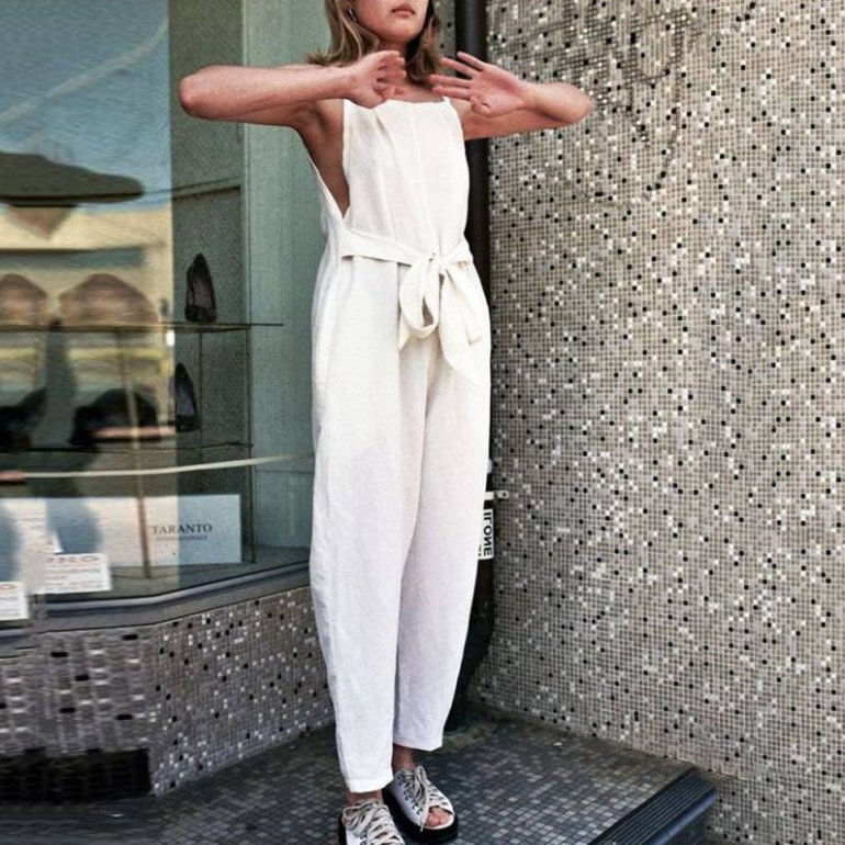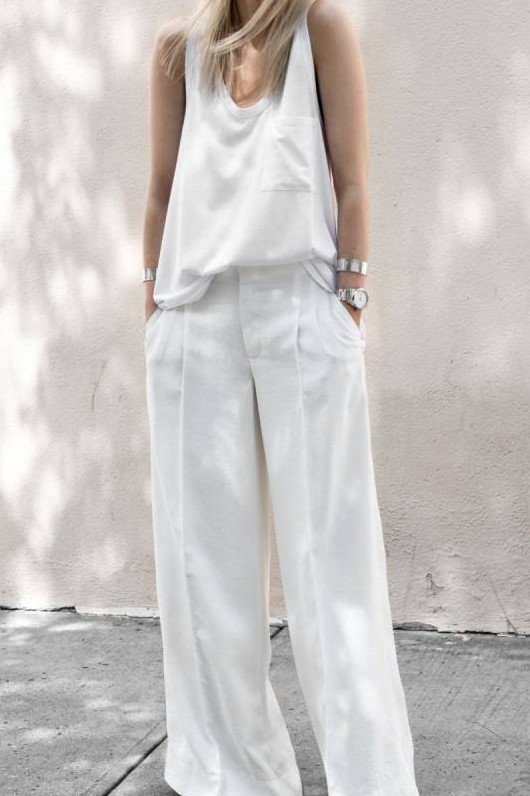 Белоснежный комбинезон с широкими брюками.