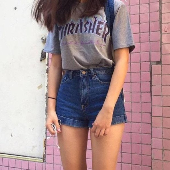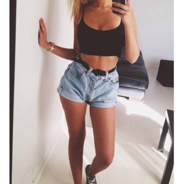 Очень короткие шорты и топ.