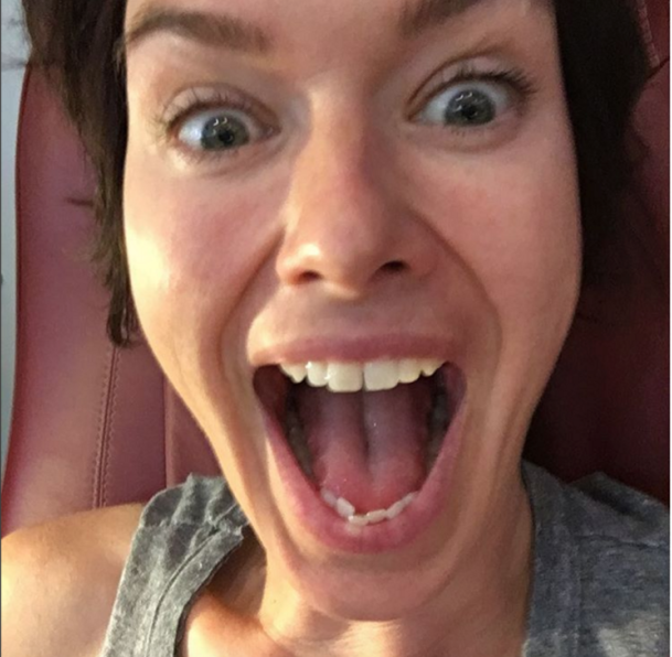 Белла Торн открытый рот.