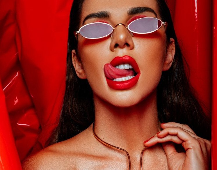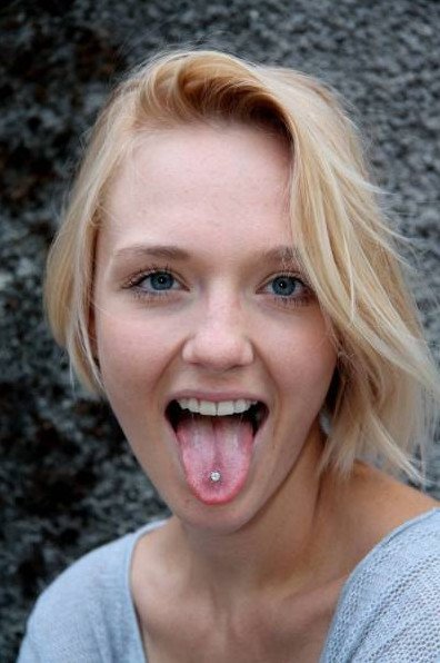 Красивая девушка с языком.