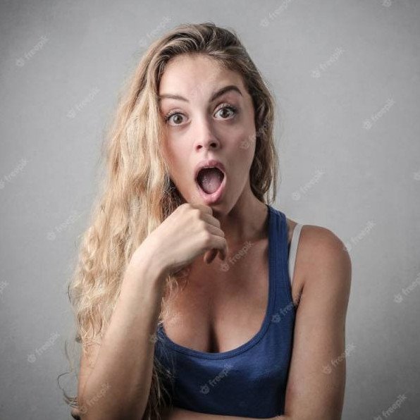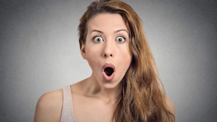 Красивая девушка открыла рот от удивления.