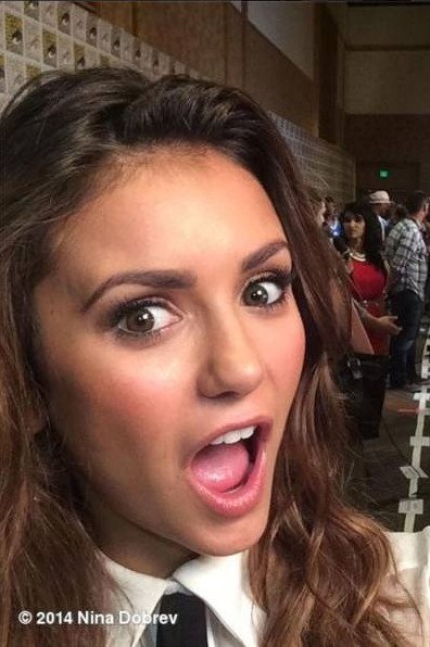 Нина Добрев открытый рот.