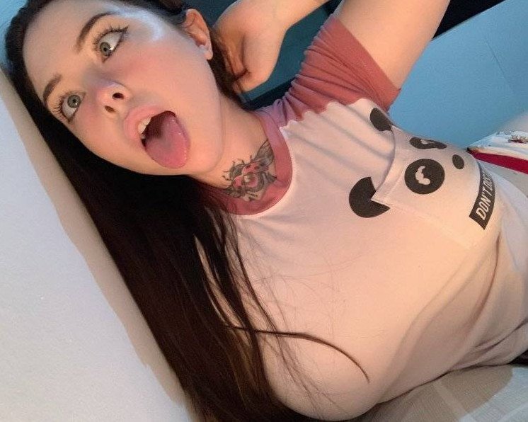 Красивая девушка с высунытым язычком.