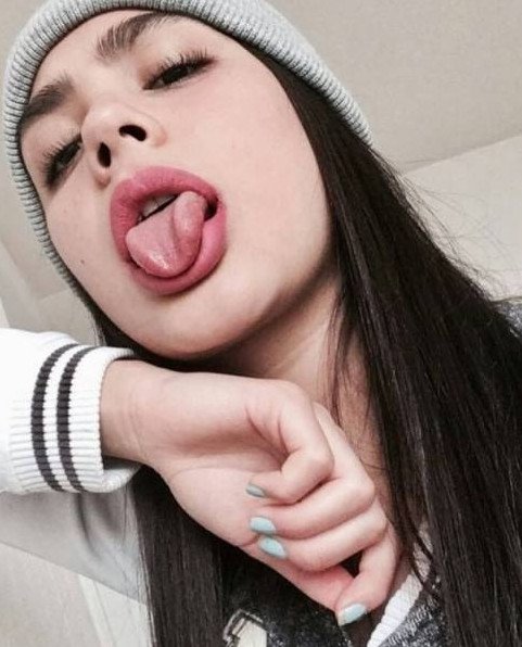 Селфи с языком восхитительные женщины.