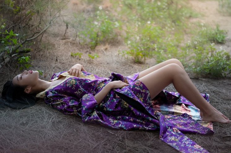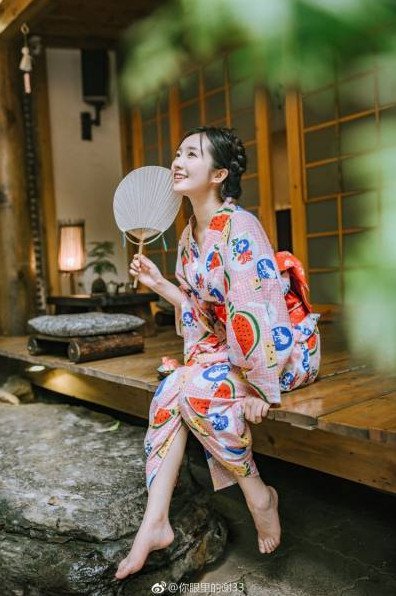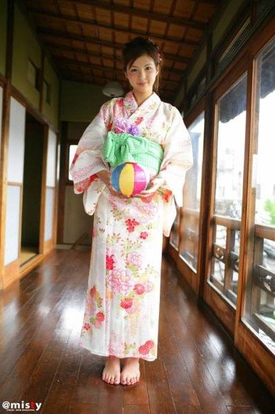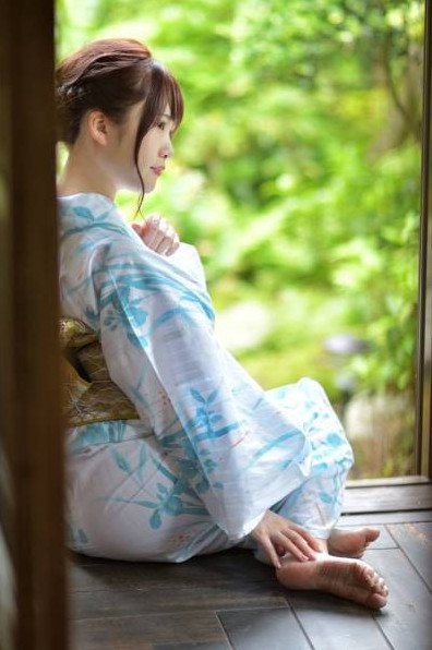 Девушка в кимоно босиком.