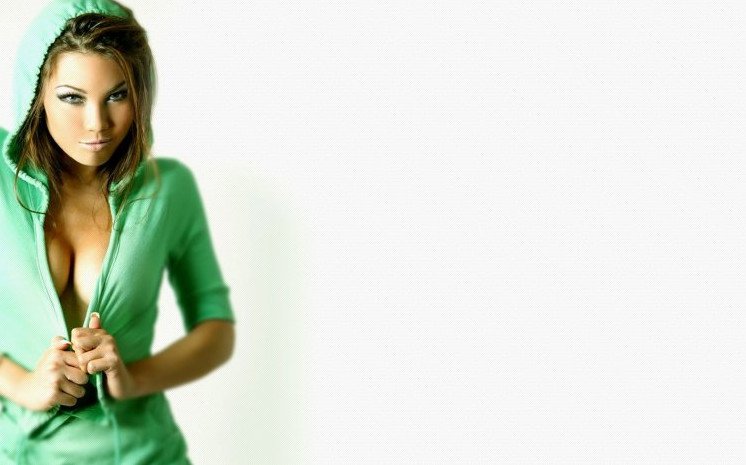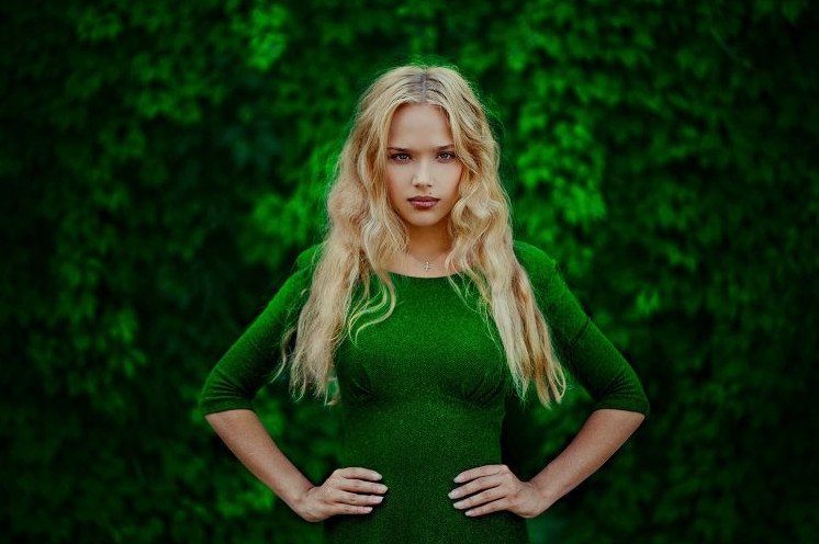 Модель на зеленом фоне.