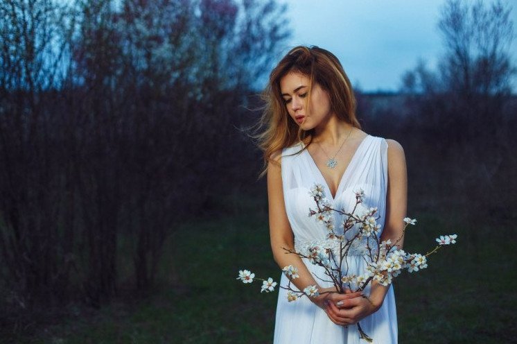 Красивые восхитительные женщины в весеннюю пору.