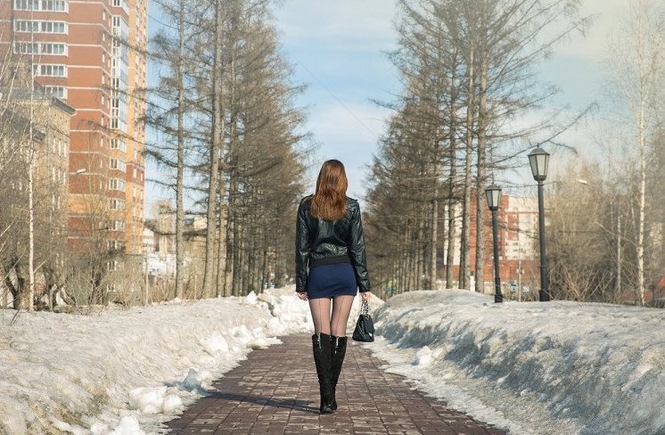 В зимнюю пору в короткой юбке.
