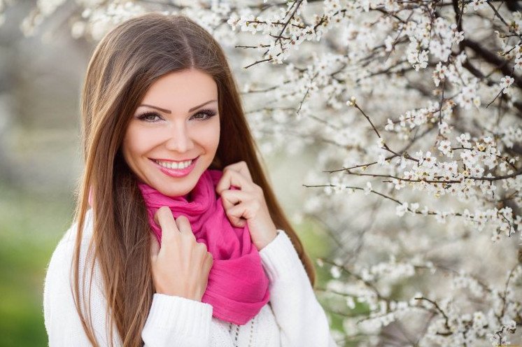 Красивая девушка в весеннюю пору.