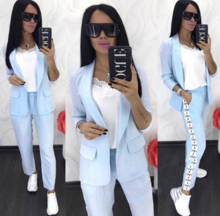 Костюмчик дамский Лира(ТК.Тиси), васильковый/т.синий.