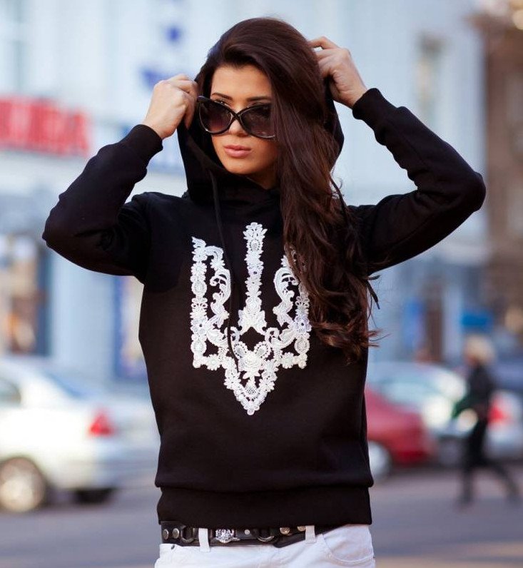 Девушка красавица в темной рубахе.