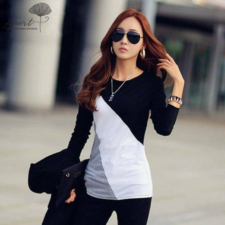 Престижная женская футболка с длинноватым рукавом.