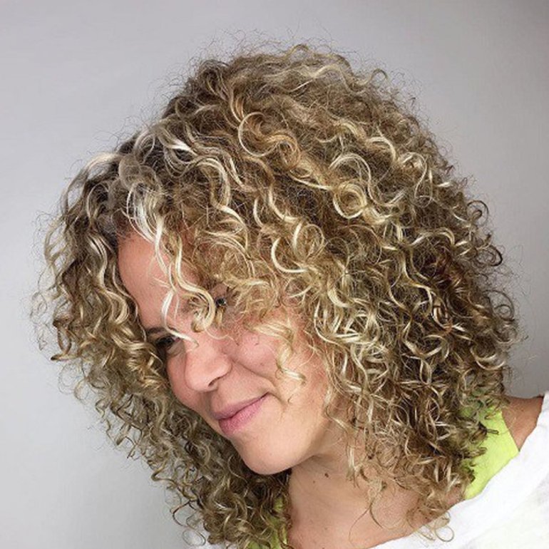 Мелирование на кудрявые волосы.